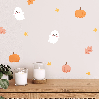 Halloween on yksi vuoden suurista juhlapäivistä lapsille. Juhlista leikkiä ja iloa tunnelmallisilla kurpitsojen, lehtien, tähtien ja suloisten kummitusten koristamilla seinätarroilla. Tarrat ovat itsekiinnittyvät ja siksi superhelpot kiinnittää ja irrottaa.